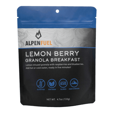 Nothing quite says good morning in the high country like our Lemon Berry Granola.  Made from fresh lemon zest, honey sweetened granola, raspberries, and blueberries, this meal is perfectly balanced to keep you energized for hours.