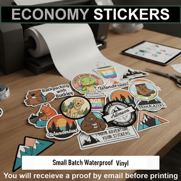 - Economy stickers use a thinner vinyl. Great for more affordable handouts.